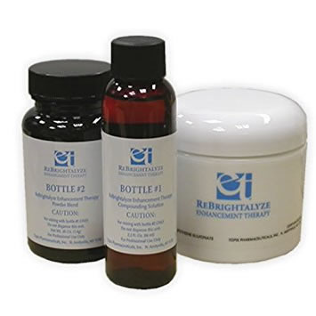 · ReBrightalzye Enhancement Therapy Compounding Solution (bottle #1): Ethoxydiglycol, Water, Calcium, Pantetheine Sulfonate, Camellia, Sinesis (Green Tea) Polyphenols, Silybum Marianum (Silymarin) Fruit Extract, Phyllanthus Embilca Fruit Extract, Phosphoric Acid, Disodium EDTA, Arctostaphylos Uva Ursi (Bearberry) Leaf Extract, Ascorbic Acid.